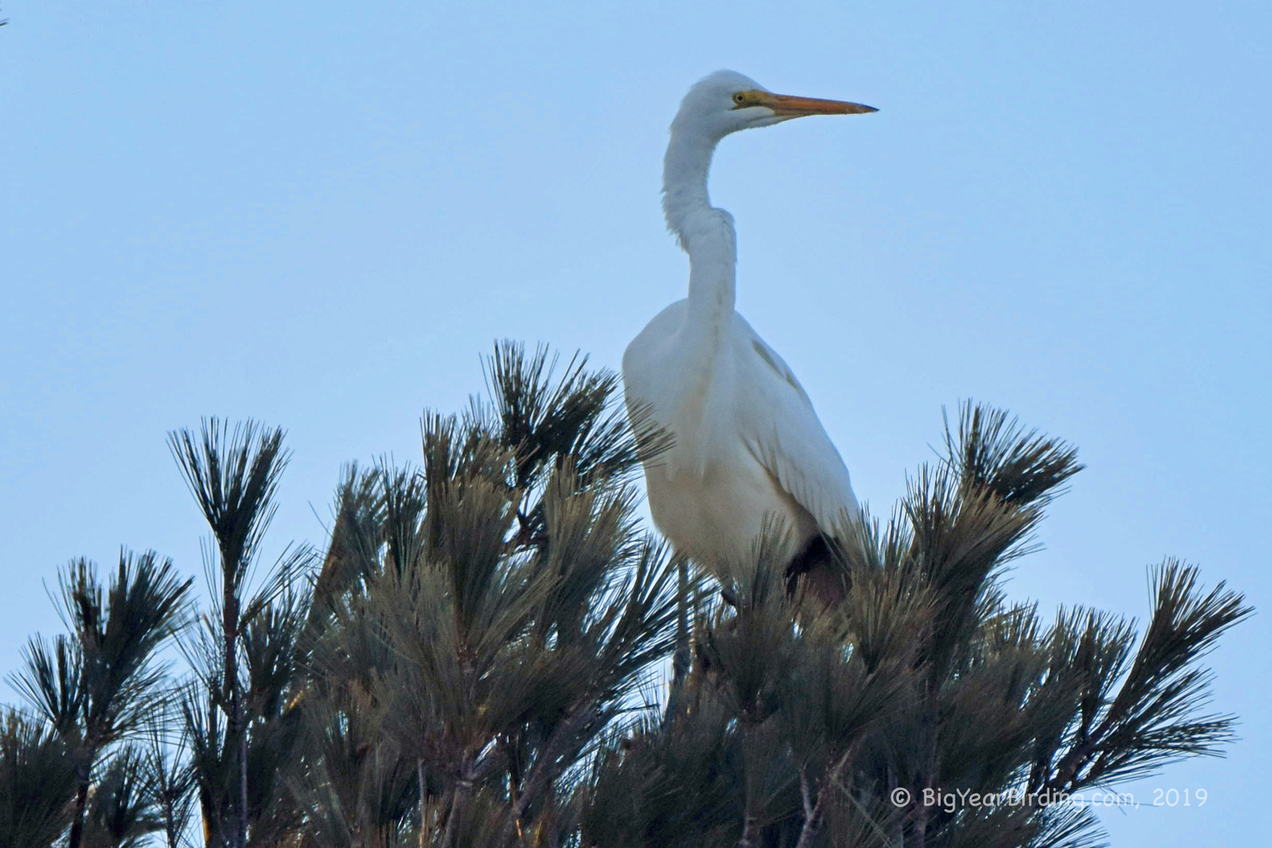 Suddenly the Egret took to the air and landed in a nearby pine tree . . . spring is coming.