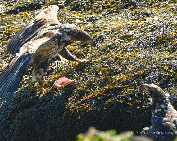 This morning Ingrid and I were awakened to the sound of two Bald Eagles arguing over a fish that one of them had caught. Moving about and quarreling just below our bedroom window, we watched them for almost a half hour. These appeared to second year birds . . . Bald Eagles take five years […]