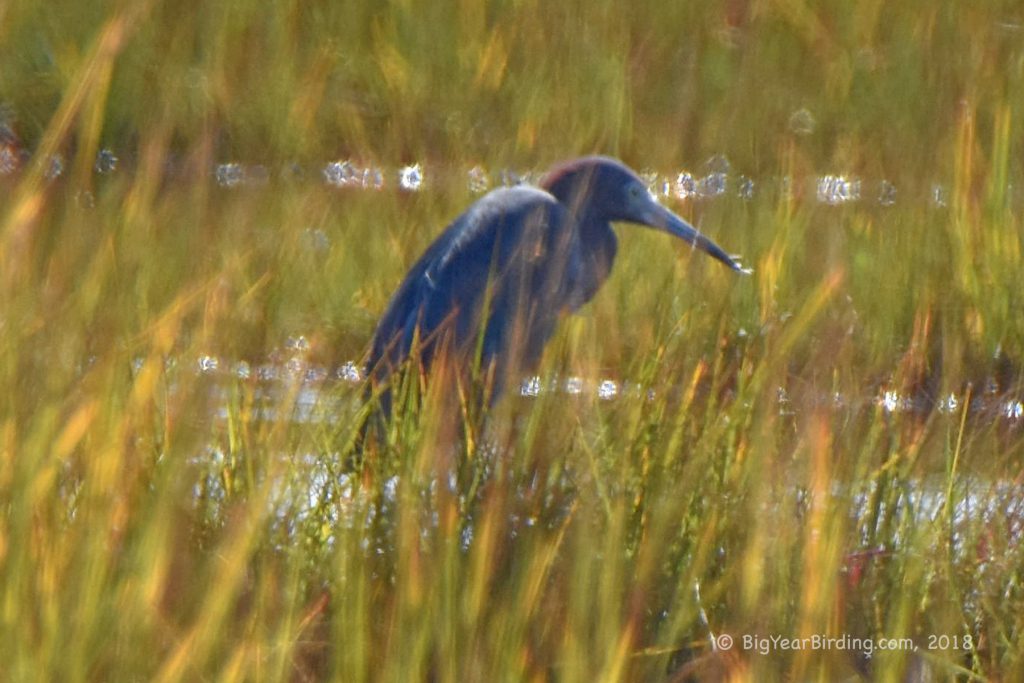 The Little Blue Heron is an excellent hunter and uses its sharp bill to catch prey both in the water and on land. It has a patient and stealthy hunting style, often waiting motionless for long periods before striking at its prey. The bird’s feeding habits vary depending on the location and availability of prey, and it is known to forage in both shallow and deep water.